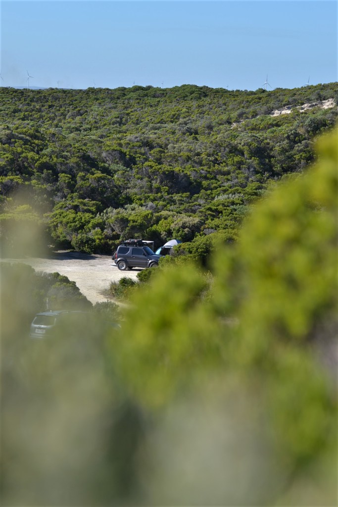 Our first stop was the Carpenter Rocks Campground, a serene haven nestled amidst the dunes. Surrounded by native vegetation and offering panoramic views of the ocean, it was the perfect place to set up camp and immerse ourselves in nature’s embrace. With spacious sites and easy access to the beach while still being very protected from the winds, it quickly became our favorite coastal camp in SA. As we were camping with a floor tent at the time we also noticed how easy it was to peg down our tent compare to a lot of other camp in this state where the ground is too hard or rocky.